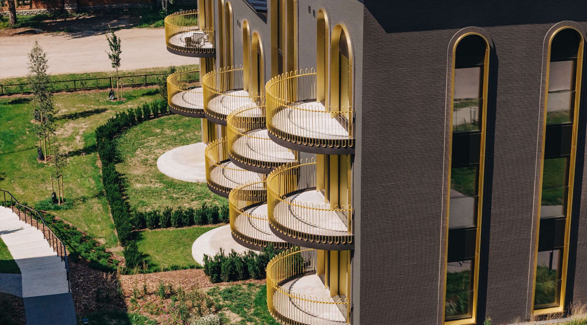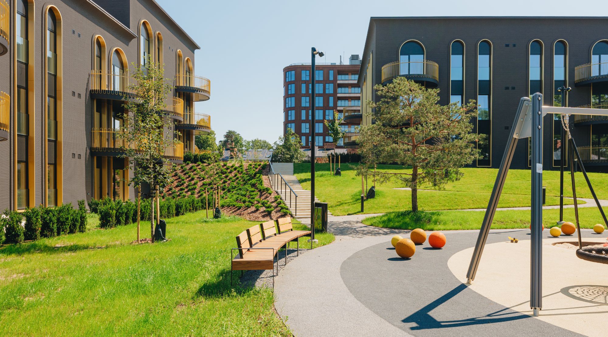 Kõikidel korteritel on rõdu või terrass, kust saab nautida vaateid tenniseväljakutele või jälgida last hoovis tegutsemas. Maja kõrvale jäävad ka park ning ajalooliste hoonete kompleks.
