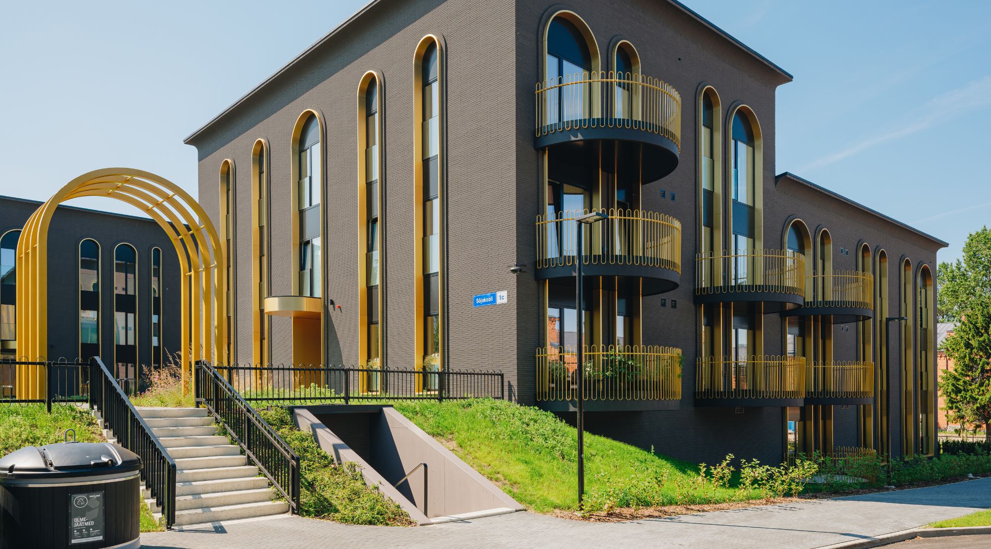 Hoone näol on ühe maa-aluse ja kolme maapealse korruselise kahe hooneplokiga korterelamuga. Peasissepääsud A- ja B-korpusese on Sõjakooli tn kaguküljelt. Kummagi hooneploki sissepääs on suunaga parklapealsesse eesaeda. Mõlemal korpusel on oma lift ning trepikoda, mis ühendab neid maa-aluse parklakorrusega.