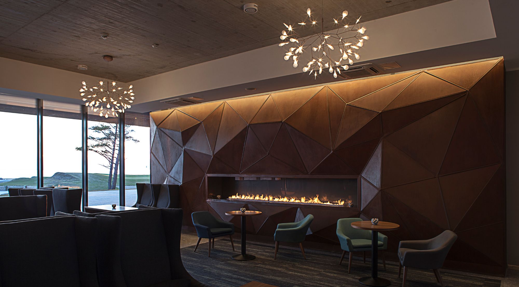 Eriti uhked oleme sellest, kuidas suutsime luua arhitektuurse lahenduse, mis toimib nii intimses skaalal kui ka monumentaalsena. Restoran Eagle’i ruumides, kus massiivsed lagede kunstiteosed räägivad mere dünaamilisest iseloomust, saab nautida põhjamaist köögikultuuriga rikastatud kaasaegset menüüd. Kõik on kujundatud mõttega, et golf pole lihtsalt mäng, vaid elustiil.