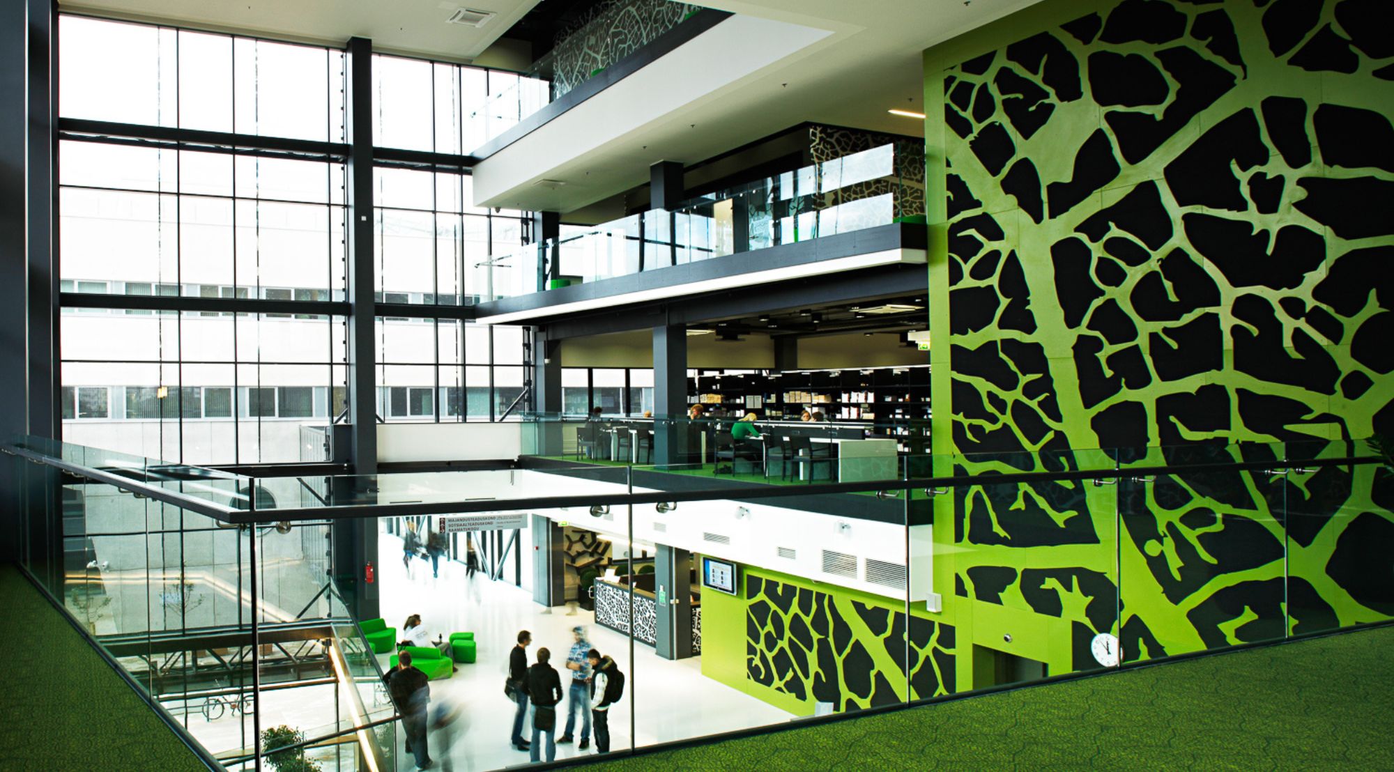 Hoones on viis maapealset korrust ja üks maa-alune korrus. Lugejatele on avatud 2.-5. korrus, kus paiknevad tumedate seinte ja valgete põrandatega ruumid, mis sobivad hästi kokku musta metallist raamaturiiulite ja lumivalgte töölauda dega. Esimesel korrusel asuvad tervisetehnoloogiate instituut, muuseum, kohvik ja – tänapäevaselt – 24/7 avatud õpituba.